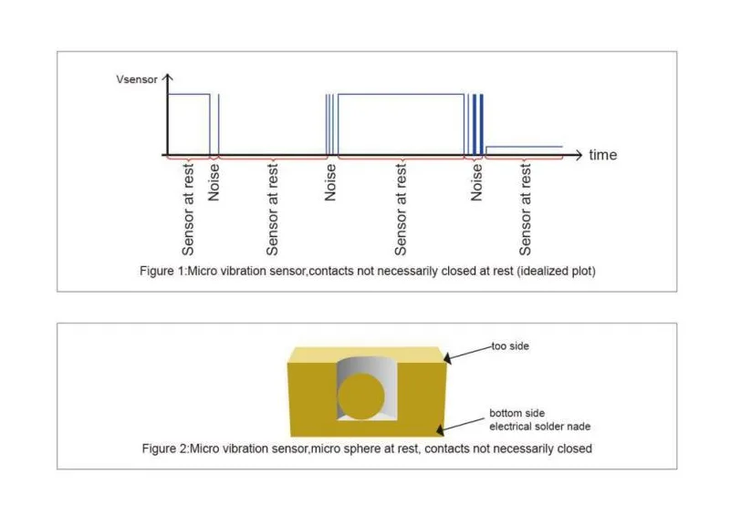 - Active State: When vibration occurs, the internal ball bridges the contacts.