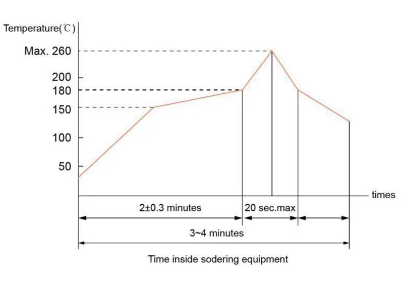 - Reflow Profile: Peak temperature 260°C (≤ 5 seconds).